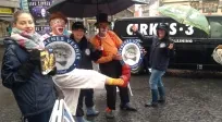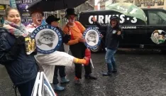 Dyrenes Venners årlige cirkusforestilling druknede i regn, men de aktive dyrevenner og klovnerne Charlie & Binalto var som altid i hopla og lavede løjer for at vise, at cirkus sagtens kan være underholdende uden dyr. Du kan læse mere om, foreningens arbejde for at få dyr ud af cirkus her og bestille gratis brochurer her. Tak til dyrevennerne, der trodsede regn og slud for at deltage i arrangementet.