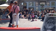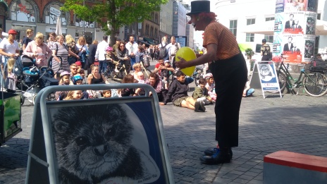 Klovnerne Charlie og Binalto på Vesterbro Torv lørdag d. 3 maj. Her var masser af sjov uden dyr!